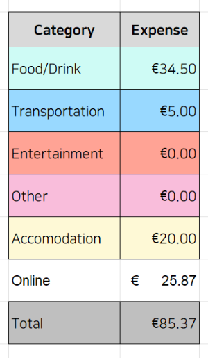 앞뒤 여행지 계획에 밀려 1박2일만 하게 된 나폴리에서의 여행경비. 숙박과 도시로 들어오는 버스, 그리고 나갈 때 탄 공항버스를 포함해서 약 85유로를 사용하였습니다.