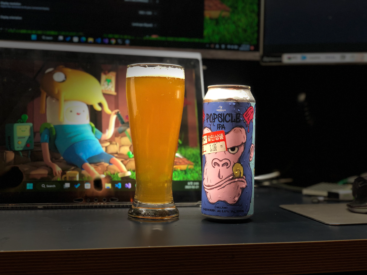 오늘은 부산에서 온 귀한 맥주, 고릴라 브루잉의 팝시클 IPA를 꺼내보았습니다.