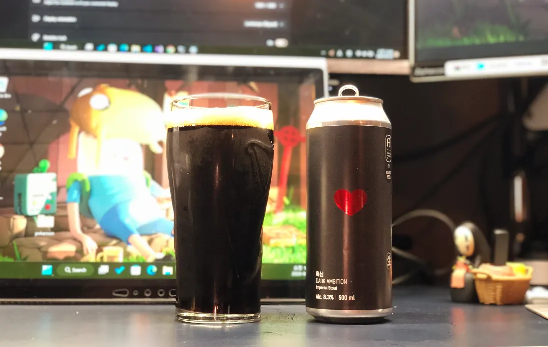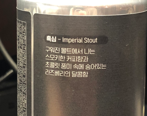 오늘은 첫사랑 IPA와 세트로 사온 흑심 Imperial Stout를 꺼내보았습니다. 임페리얼 스타우트 특징대로 알콜 도수가 8.3%나 되는 맥주 치고는 알콜 함량이 높은 맥주 입니다.