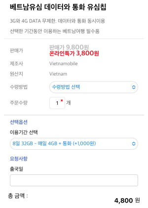 저는 여행기간이 12일이라 15일 옵션으로 비교했는데, 기간이 짧으면 추가금액이 더 적거나 없습니다. 다만, Vietnamobile은 8일 옵션이 가장 긴 것으로 나옵니다.