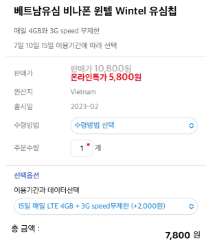 저도 심카드를 고를 때 Wintel을 처음보고 어떤 통신사인가 싶었는데, 검색해도 나오는 정보가 거의 없었습니다. 판매처에서 괄호치고 (Vinaphone)이라고 표기해놓은 것이 사실상 얻을 수 있는 모든 정보였는데, 같은 통신망을 사용하는 알뜰폰 정도겠거니 싶어서 선택하였습니다. 선택의 가장 큰 이유는 역시 가격이죠.