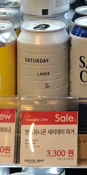 오늘은 숨은 힙한 카페가 떠오르는 디자인의 맥주, SATURDAY LAGER를 구입하여 마셔보았습니다. 독일에서 온 맥주이고, 원래 판매가격은 얼마인지 모르겠지만, 세일중이라 큰 고민없이 들고 왔습니다.