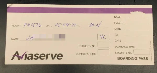 티켓을 다시 불러오려면 어플을 설치해야하는데, 문제는 RyanAir 어플이 한국 앱스토어 계정으로는 다운로드가 되지 않습니다. 먼저 유럽계정을 만들고 나서 어플을 받아야 하는데, 지금 비행기 탑승이 시작된 마당에 이게 될 리가 없었죠. 이렇게 또 라이언에어에 당하나 싶었는데, 게이트에 있는 직원한테 상황을 설명하니 체크인 목록 확인하고 대안을 찾아주었습니다. 바로 '수기 보딩패스' 였죠. 심지어 이름 스펠링도 틀렸는데, 어차피 비행기만 타면 되니 뭐 그러려니 하며 땡큐 남기고 문제 없이 탑승 했습니다.