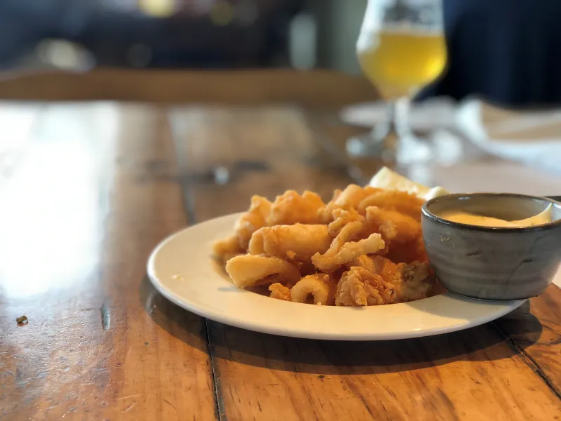 스페인에 왔으니 맛봐야하는 음식, 빠에야 paella가 빠질 수 없겠죠. 1인분을 파는 곳은 잘 없고, 2~3인분을 혼자 먹기에는 양도 가격도 썩 맞아 떨어지지가 않아서, 동행을 구해 나눠먹었습니다. 빠에야만 먹기는 아쉬우니 오징어튀김(?) 같은 타파즈 하나와 바르셀로나에서 유명한 레몬 맥주를 시켜 쉐어하였습니다.