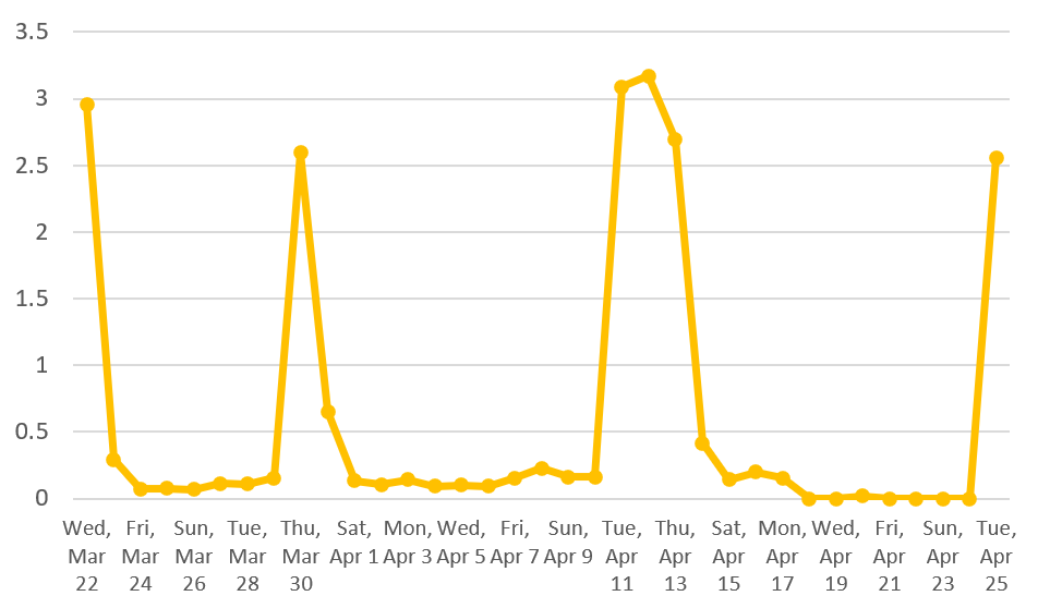 저의 기록에서 유추해볼 수 있는 점은 일주일 정도 기간을 단위로 평가가 이뤄지는것이 아닌가 하는 점 입니다. 첫 1주일 제한 후 광고노출수가 복구되었다 다시 떨어진것으로 보아, 노출수를 복구해보니 여전히 구글이 문제라고 보는 점이 잔존하여 다시 제한을 조치한 것이 아닌가 합니다. 3주 정도 지난 시점에서도 다시 복구되었다가 또다시 제한에 걸린 것을 볼 수 있죠.