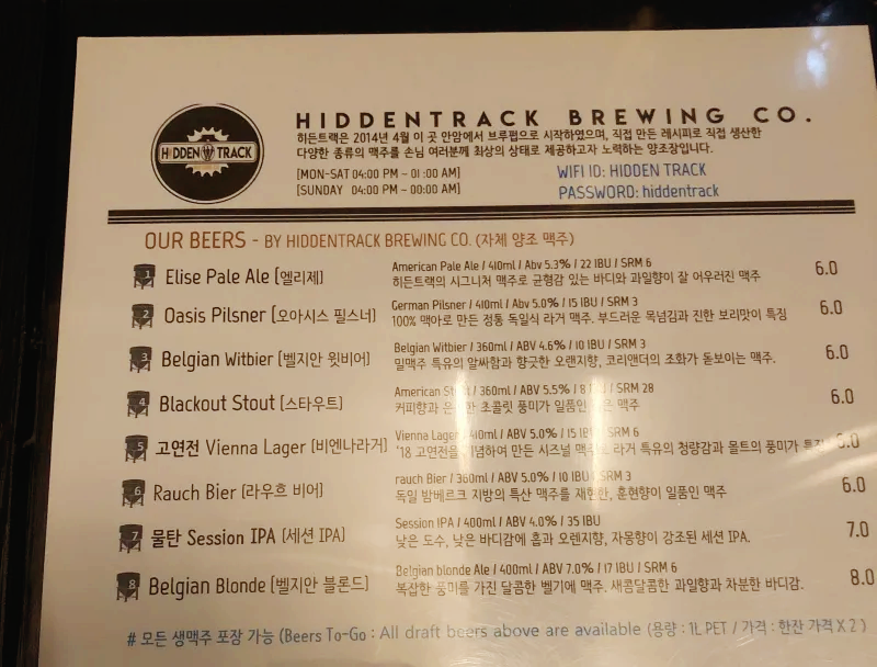 히든트랙은 제가 초기부터 개인적으로 좋아하고 또 자주 가서 마시던 맥주 양조장 겸 매장 입니다. 안암오거리 근처 지하에 처음 매장을 열고 매장에 양조시설을 갖춘 말 그대로 동네 브루어리 였습니다. 지금은 그 규모가 커졌는지 매장에서 양조하지 않고 따로 다른곳에 양조시설을 만들어 운영중인 것 같습니다.