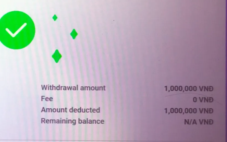 최소 수수료는 인출액의 1.5%, 최소 30,000동 입니다. 10% 세금 이야기는 없으니 없다고 치면, 200만 동 까지는 인출 시 최소 수수료인 30,000동 이고, 그 이후로 1.5% 비율로 올라갑니다. 즉 300만 동 인출 시 45,000동(약 2,500원)이 되는 식입니다.