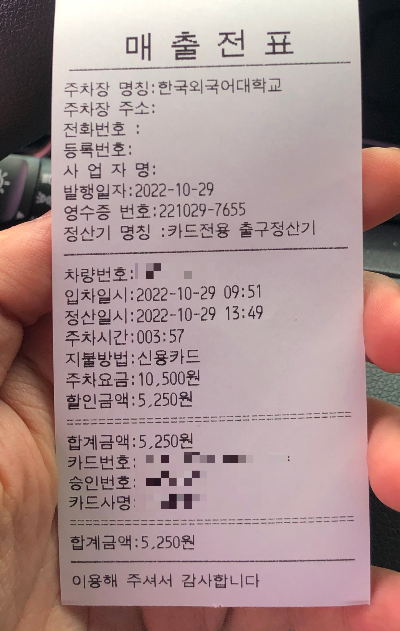 문제라면 시험장에 대한 정보가 너무 없었는데, 하다못해 한국외대 홈페이지에서도 주차비 정보를 찾을 수 없었습니다.