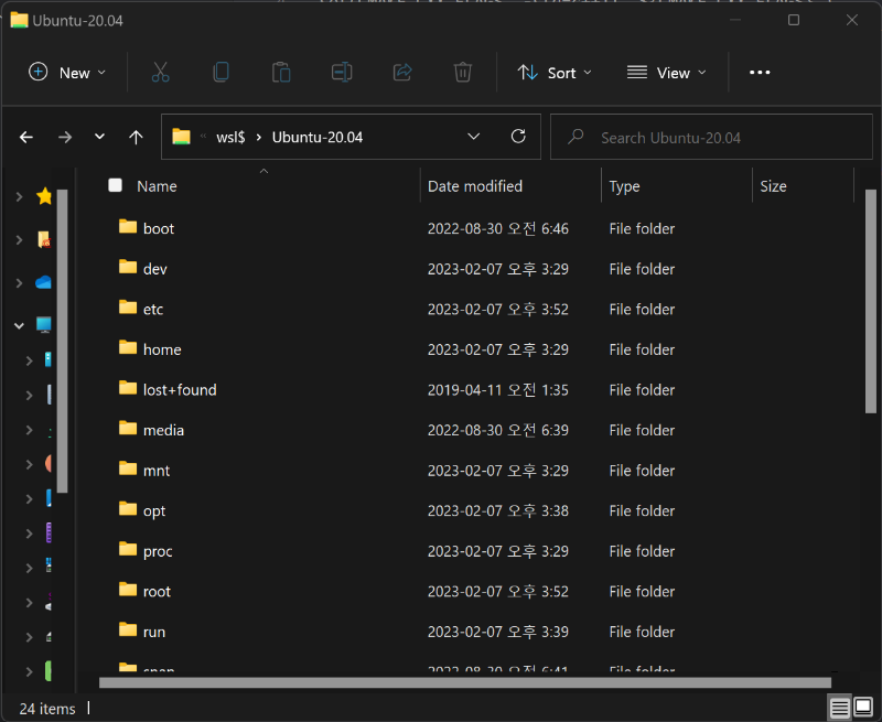 WSL와 WSL2의 home폴더 접근에 차이가 있는데, WSL2로 Ubuntu를 설치하였을 때 home폴더에 접근하는 방법에 대해 소개합니다. 차이 WSL 이전버전에서는 윈도우에 Ubuntu를 설치하면 윈도우 시스템 어딘가에 일반적인 방법대로 파일을 위치시키는 형식으로 설치하는 방식이었습니다. 그래서, WSL 실행 여부와 무관하게 윈도우에서 Ubuntu 파일 시스템에 접근할 수 있었습니다. WSL2 부터는 방식이 바뀌었는데, 대놓고 파일시스템이 노출되어있는것이 아니고, 버추얼디스크 형태로 설치되기 때문에 WSL을 실행하여 mount를 해야만 파일 접근이 가능합니다. 접근 방법 WSL이 실행되면 네트워크 장치의 형식으로 연결이 되며, 아래 경로로 접근할 수 있습니다. \\wsl$ 윈도우의 파일탐색기에 위 ..