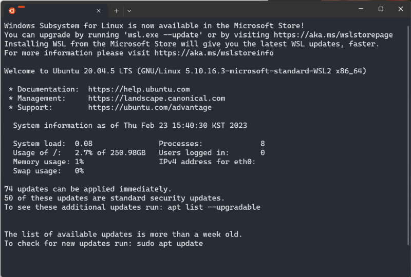 WSL이 Version 2로 올라가고, Windows 11에는 GUI 기능까지 네이티브로 지원하면서 개발작업을 하는데 있어 그 활용도가 많이 늘어났습니다. 리눅스를 찾아 PC를 옮겨다니거나 무거운 가상머신 소프트웨어를 사용하지 않아도 되는 점, 윈도우에서 돌아가면서도 그 로드가 꽤 적다는 점에서 잘 만든 툴이라고 생각합니다. 그런데, WSL를 조금만 써보면 느끼게 되는 사소한 불편함이 하나 있는데, 바로 TAB 버튼을 누를 때 자주 발생되는 경고음, 혹은 알림음 소리 입니다. TAB 키를 사용하는 이유 리눅스에서 Tab 키는 여러 가지 용도로 사용됩니다. 명령어나 파일 이름 자동 완성: Tab 키는 현재 입력중인 문자열의 완성을 시도합니다. 예를 들어, "ls /hom"을 입력하고 Tab 키를 누르면, ..